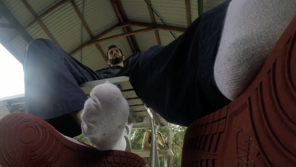 You walk up to Damon nervous, scared and tiny next to his HUGE sneakers and he spots you, he doesn't mind you checking out his shoes though. He gets a lot of attention because of them. He takes them off and relaxes some more before putting things back on but before he leaves he thinks it might be your lucky day.